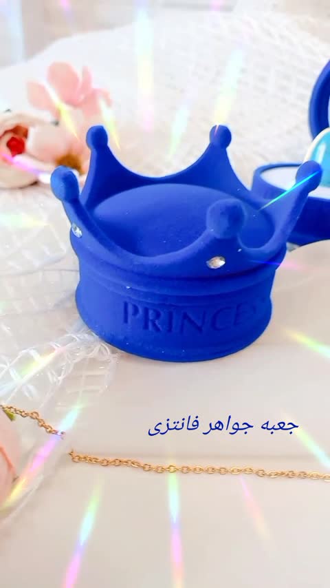هدیه ات را خاص تر کن جعبه عروسکی تاج در دو رنگ آبی و زرشکی مناسب برای انگشتر، مدال
