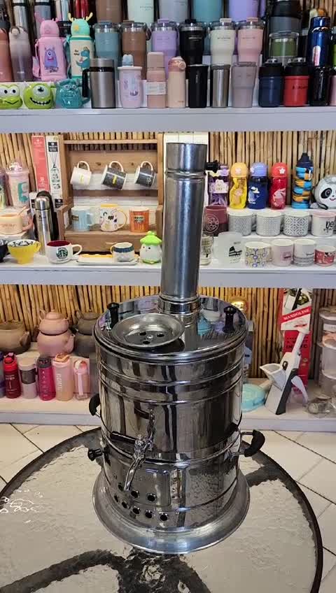 این سماور محصول کارخانه رنجبر که یکی از قدیمیهای این حوزه هست تهیه شده جنس محصول استیل باکیفیت حجم 8لیتری(در بازار 10لیتر هم یه سریها میگن) حجم 5لیتری هم با هیزم و هم با ذغال کارایی داره 8دقیقهای آب جوش میاد از فضای آتشدانش میشه به عنوان منقل برای کباب یا قابلمه استفده کرد کف زیر سماور یا همون پایه سماور از جنس روحی هست تا هم مقاومت بیشتری داشته باشه و هم انتقال حرارت کمتری ایجاد بشه دودکش بلندش برای مکش هست که آتیش شل نشه امیدوارم در استفاده از این محصول لذت ببرید در آخر هم باید بگم جزئیاتی در این محصول وجود داره که از رقباش متمایزش میکنه مثل متحرک و قابل تنظیم بودن فضای قوری که باعث میشه چای نسوزه یا آب جوش زودی بخار نشه... 👈لطفا از باقی محصولات غرفه هم دیدن بفرمایید🌹 سماور زغالی سماور هیزمی