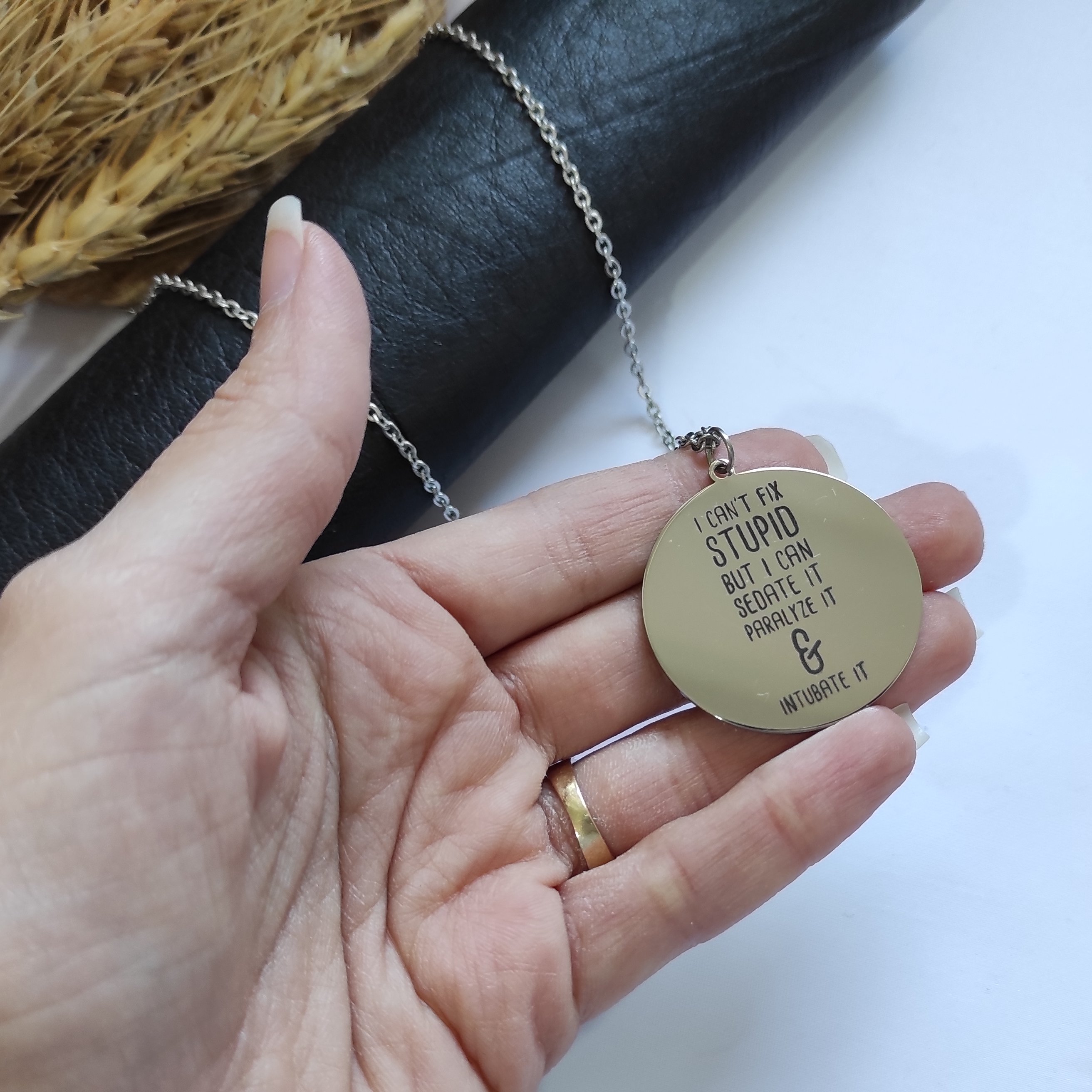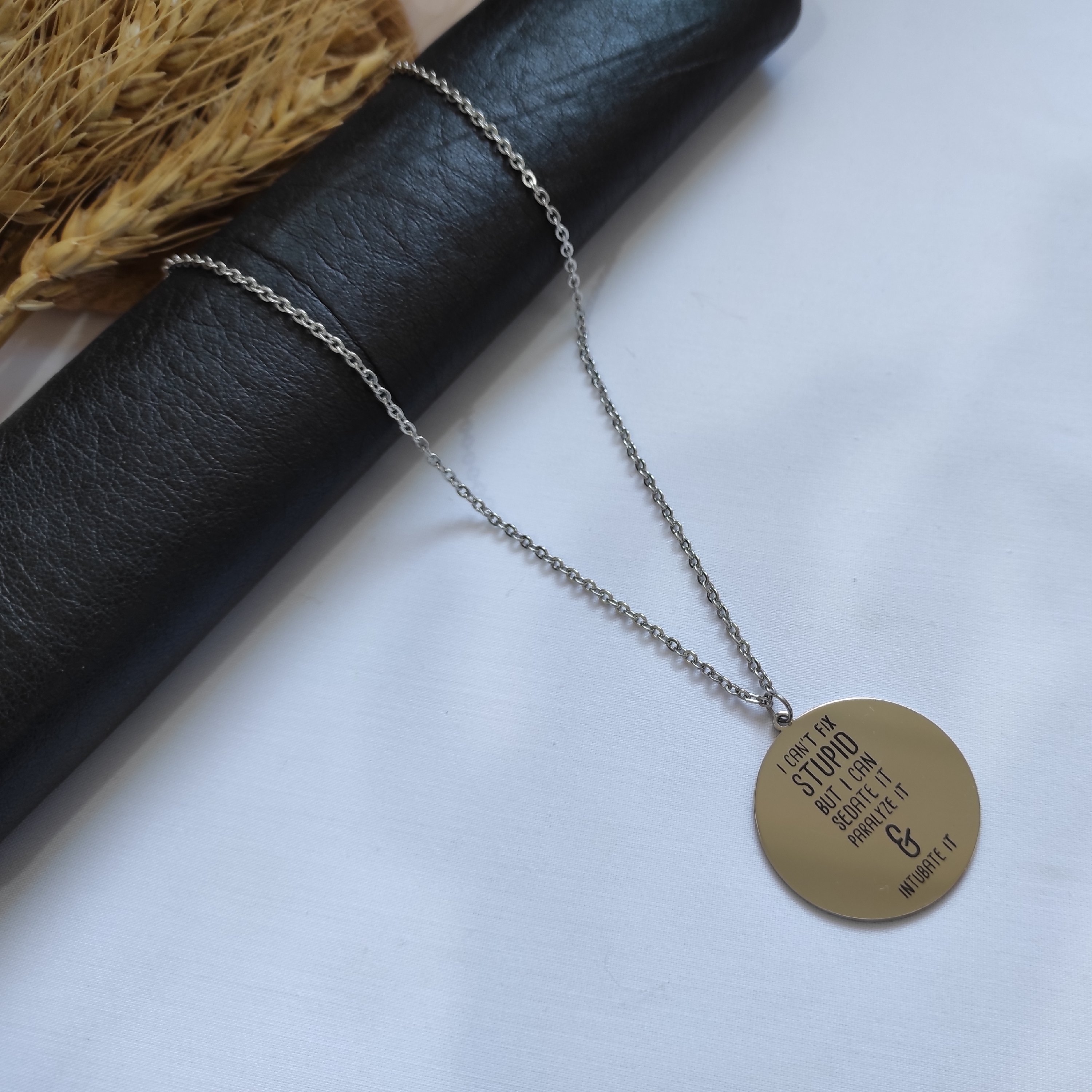ساخت خودمونه 100٪ استیل رنگ ثابت متن دلخواه شما حک میشه(قبل ثبت پیام دهید) پلاک براق حکاکی لیزری دلخواه