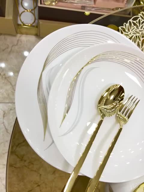 سرویس غذاخوری 36 پارچه شمل طلایی (پسکرایه) گرد و مربع ،سرویس ارکوپال 6نفره کامل طرح شمل طلاکوب گرد دایره و مربع