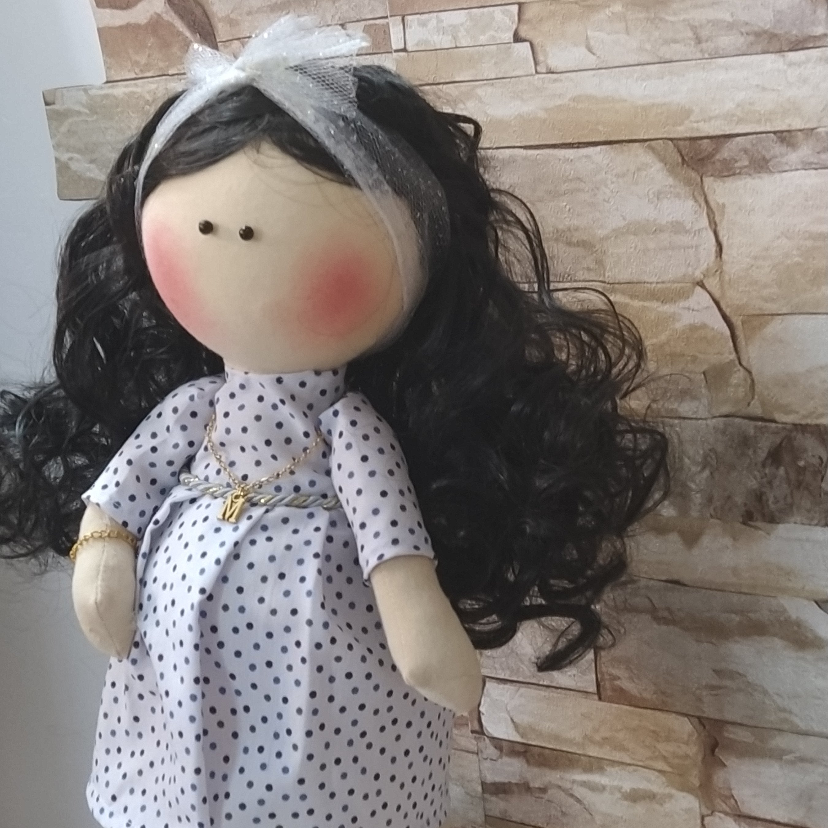 این عروسک نمادی از مادر شدن ،وبارداری،قد 37سانت با همراه گردنبند و دستبند و لباس و کفشش به سلیقه مشتری قابل تغییر