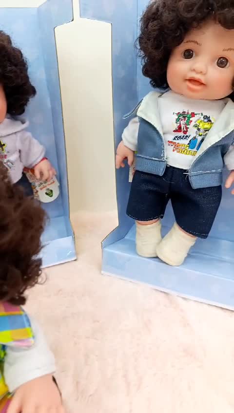 عروسک پسر لاکچری تمام گوشتی موهاش کاشت و پر و فر قدحدودا 30 سانت موزیکال 3 آوازه با جعبه ویترینی