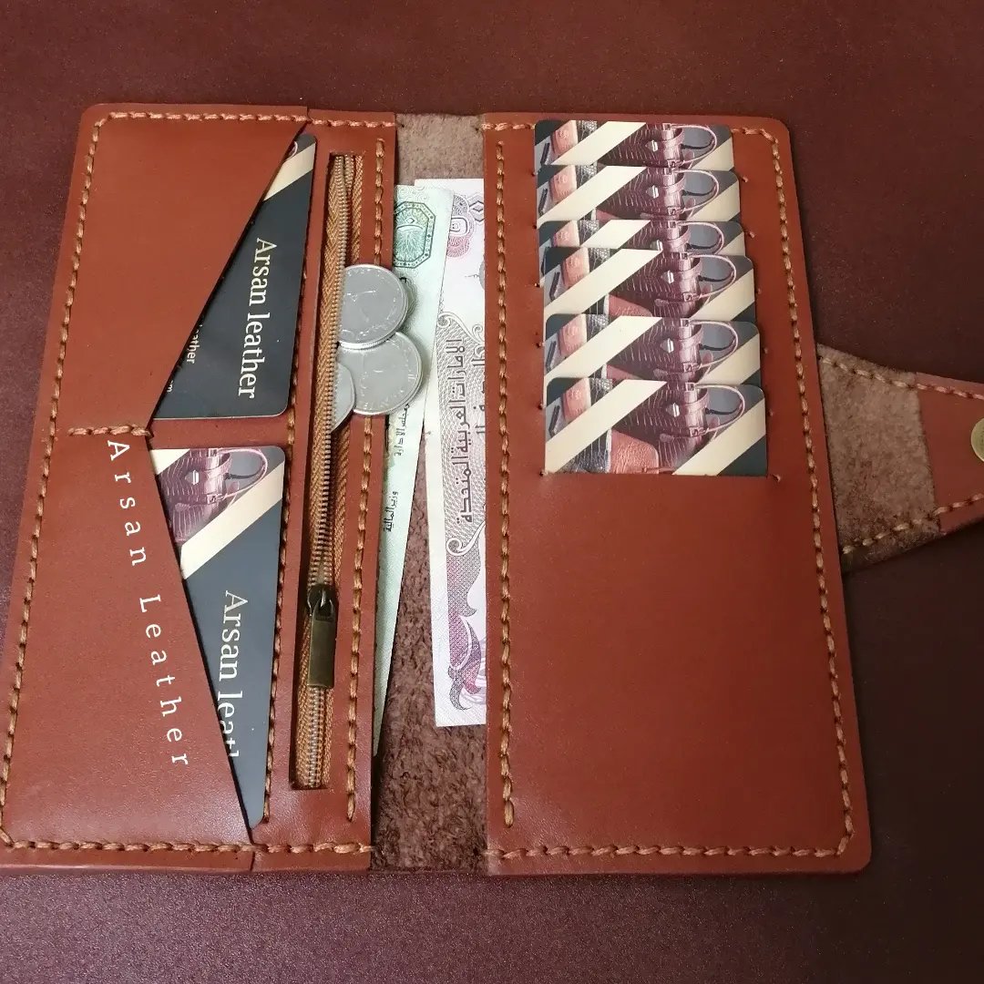 کیف کتی مردانه از چرم طبیعی گاوی، ابعاد 10 *19 ،دارای جای اسکناس ،جای سکه و 9 جای کارت می باشد،کاملا سفارشی