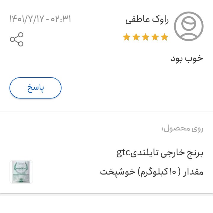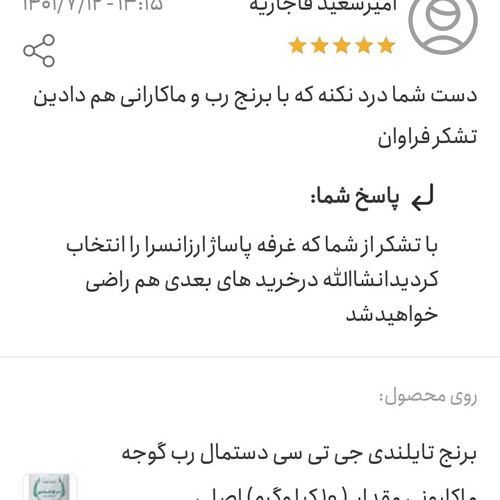 دست شما درد نکنه که با برنج رب و ماکارانی هم دادین تشکر فراوان
