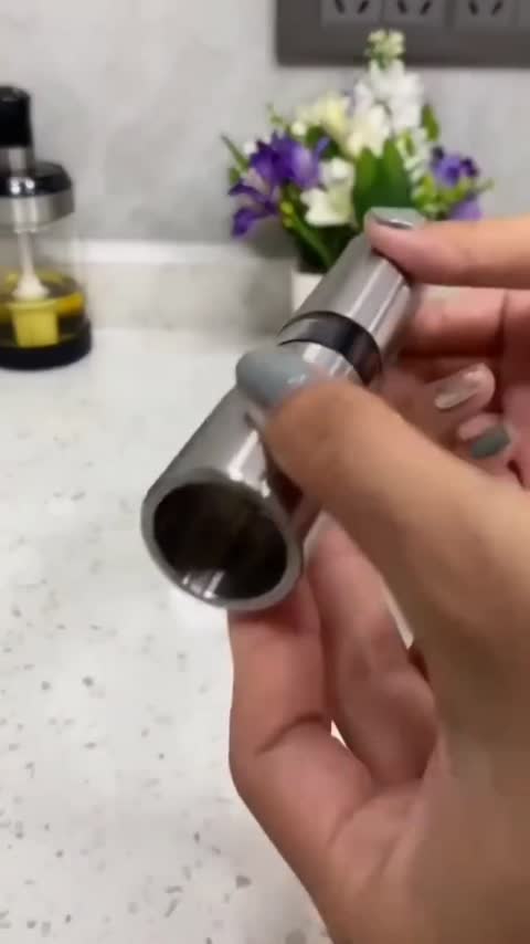 قطر 2.5 و ارتفاع 15 سانتیمتر وزن 180 گرم جنس بدنه استیل جنس سری استیل قابلیت شستوشو با دست