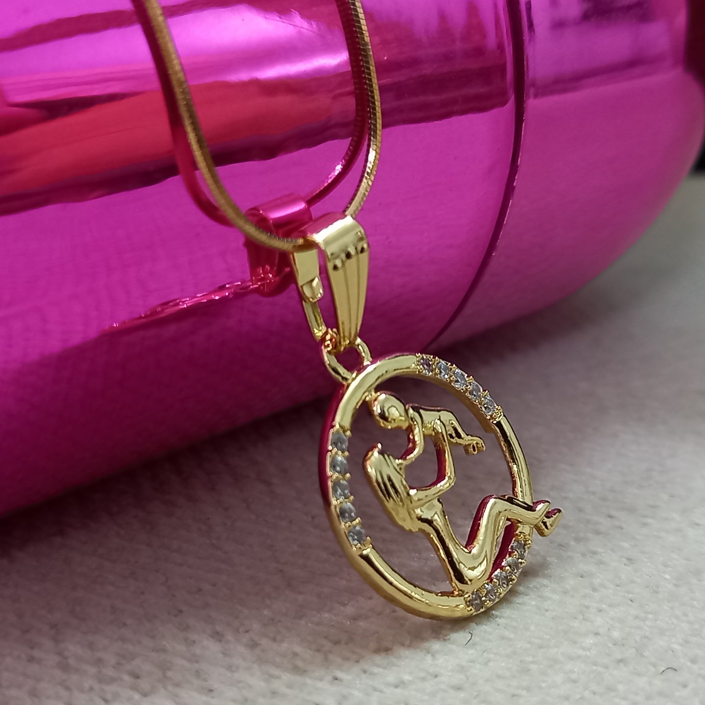 نگین دار برند ژوپینگ رنگ ثابت ضدحساسیت همراه با زنجیر ماری ژوپینگ آبکاری کپی طلا