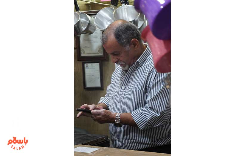 او حالا ۸۲ ساله است و از هفت سالگی کف همین بازار مسگرها بزرگ شده. خودش میگوید قدیمیتر از او دیگر نمانده در این راسته.