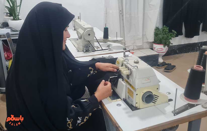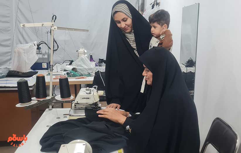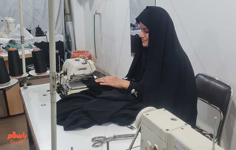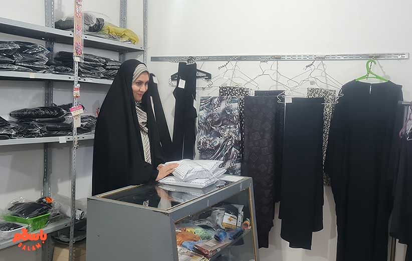 مادر حرف طیبه را تکمیل میکند: «من همچنان چادر میدوختم و به فامیل و همسایه میفروختم. خیلیها هم خودشون پارچه چادری هاشون میآوردن تا من براشون بدوزم. این جوری نبود که حالت تولیدی داشته باشه یه خیاطی خونگی داشتیم توی اتاق خونه اما بعد از چند وقت طیبه خانم کار دست ما داد گفت توی باسلام غرفه زدم و حالا باید چادر بیشتری بدوزیم.»