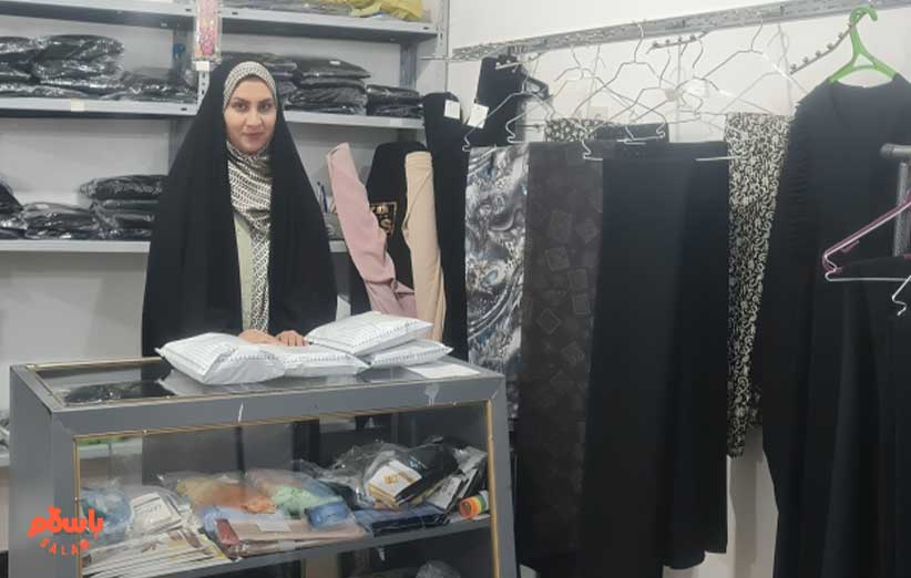 طیبه میخندد: «با باسلام توی تبلیغات تلویزیونی آشنا شدم. اوایل که خیلی درگیر بچه بودم نمیرسیدم به غرفه و در عرض دو سال فقط 50 تا چادر فروختیم. اما پاییز پارسال تصمیم گرفتم یه تحولی ایجاد کنم و چسبیدم به کار، آموزش غرفه داری دیدم؛ تنوع محصولات رو بالا بردم، عکسهای جدید گرفتم و توی این تبلیغاتی که داشتم فروش یهو بالا رفت. این مغازه مال خودمونه، خونمون پشت مغازه است. مغازه رو داده بودیم اجاره و پول چندانی نمیگرفتیم. به مامان گفتم به جای اینکه توی خونه کار کنی، بیای مغازه رو راه بنداز.»