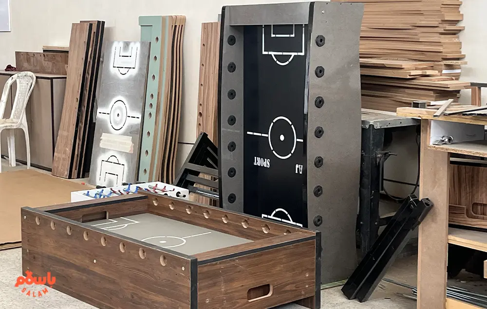 ولی حجت و مجید این فکرها توی سرشان غریبی می‌کرد. برای همین گرچه اول از ام‌دی‌اف و پی‌وی‌سی و دستگاه برش چیزی نمی‌دانستند ولی ساختند و یاد گرفتند. یکی دو تا صدتا؟؟؟ آقا مجید می‌گوید “خیلی نگذشت که کار رو یاد گرفتیم حالا با 4 تا کارگر و خودمون دو تا، 3 روزه 200 تا فوتبال‌دستی می‌زنیم و می‌فرستیم برای مشتری.” ” من تا یه ماه و داداشم حجت تا یکسال کنار همین کار، کارخونه هم می‌رفتیم”