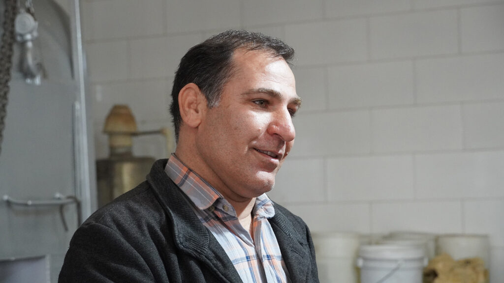 احمدآقا از روزهای اولی که تولید حلوا سنتی را شروع کرده بود تعریف می‌کرد و از خاطرات خوش و تلخش برای ما گفت. یکی از چیزهای جالبی که به ما نشان داد دو مدل بودن کف‌پوش مغازه و کارگاهش بود. کف‌پوش‌هایی که نشان می‌داد او از یک محیط کوچک شروع به کار کرده ولی به مرور آن را گسترش داده.