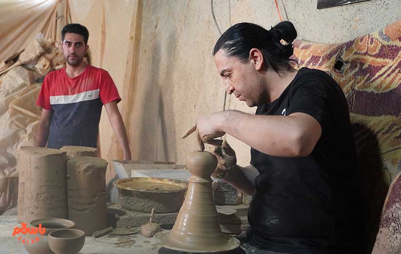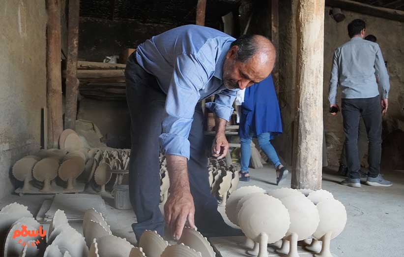 خانم شجاعی می‌گوید چندین نفر در خانه‌های‌شان مشغول میناکاری هستند برای این کارگاه. می‌گوید اگر زمینه صادرات را باسلام فراهم کند ما هیچ محدودیتی در تامین محصول نداریم چون با ده‌ها کارگاه دیگر مرتبط هستیم و همیشه ظرفیت تولید را می‌توانیم بیشتر کنیم. عکس‌های یادگاری در میان ظروف سفالی گرفته می‌شود و نوبت به چرخ سفال‌گری می‌رسد.