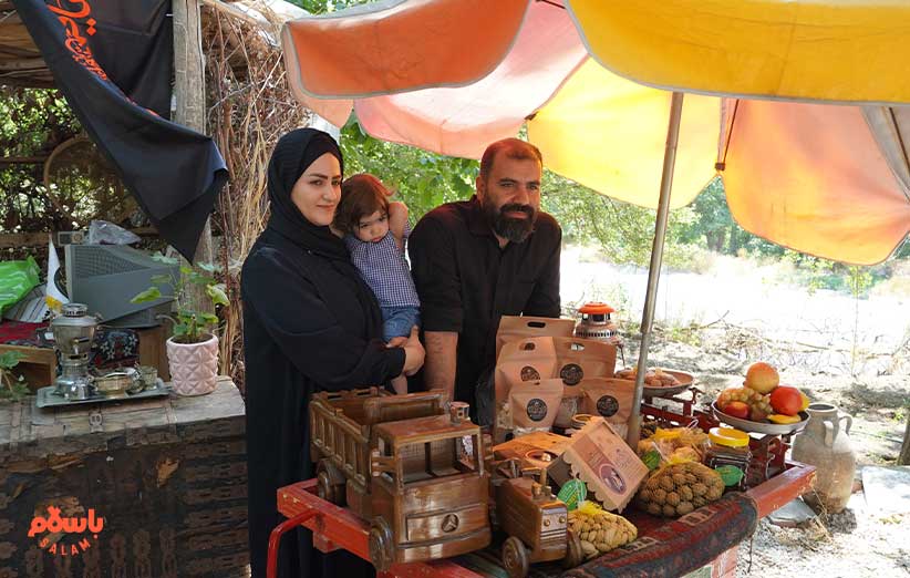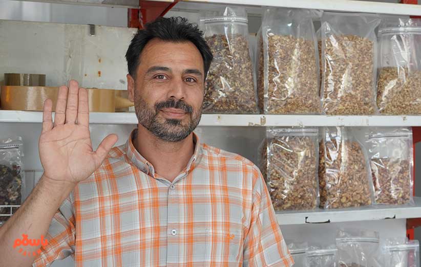 می‌گوید سه چهار سال است که این کار را انتخاب کرده. دارد گردوهای درخت‌های همین باغ رستوران را در باسلام می‌فروشد و در کنارش باقی خشکبار را هم از همین روستاها تامین می‌کند. پدر بزرگش هم سیر را به غرفه اضافه کرده و با کمک همسرش صنایع دستی و بادام و سماق و کشمش را اضافه کرده‌اند.