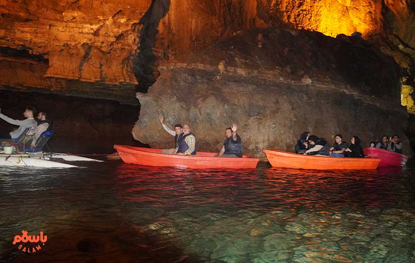 بچه‌‌ها سوار قايق‌ها می‌شوند و راه می‌افتیم. صادق از ترافیک قایق‌هایی که به هم وصل هستند عبور می‌کند و ما را از مسیری اختصاصی به پیش می‌برد. جایی خلوت در میان آب و سنگ، می‌ایستیم و عکس می‌گیریم. صادق با تسلطی خاص، اطلاعاتی درباره غار می‌دهد. این‌که قدمت غار چقدر است، چندکیلومتر کشف شده و چه سالی بخشی از غار ریزش کرده، عمق آب‌های غار به چندمتر می‌رسد، آب غار از کجا تامین می‌شود و چرا هیچ موجود زنده‌ای در غار نیست و… . از مسیری دیگر برمی‌گردیم و در خروچی غار چندتایی عکس دسته‌جمعی می‌اندازیم. استوری‌های اکانت باسلام در اپلیکیشن هم از صبح فعال شده و بچه‌ها متن‌ها و تصاویری که برایشان فرستاده‌ام را تدوین و بارگذاری کرده‌اند.