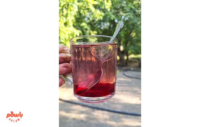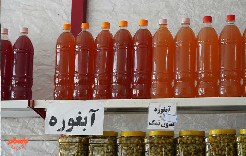 شربت آلبالوی خوش‌رنگی که محصول آلبالوهای همین باغ است را توی سینی می‌گردانند و درباره قیمت گردوی غرفه‌شان صحبت می‌کنیم.