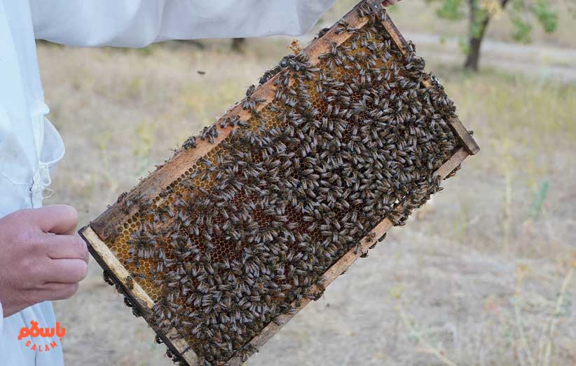 آقای دهقان و دوستانش به جز عسل، بره موم و گرده گل و ژل رویال هم دارند. زنبورها رد ورودی کندوها تجمع کرده‌اند و منتظرند ازشان عکس بگیریم.