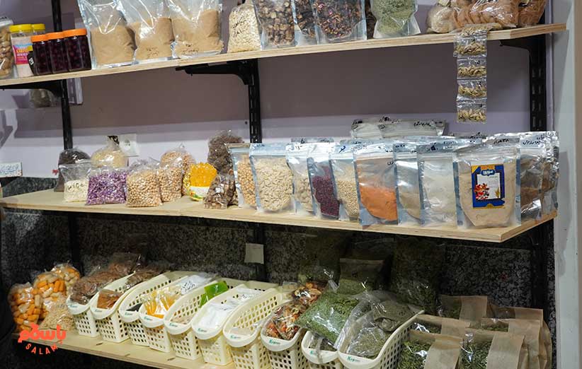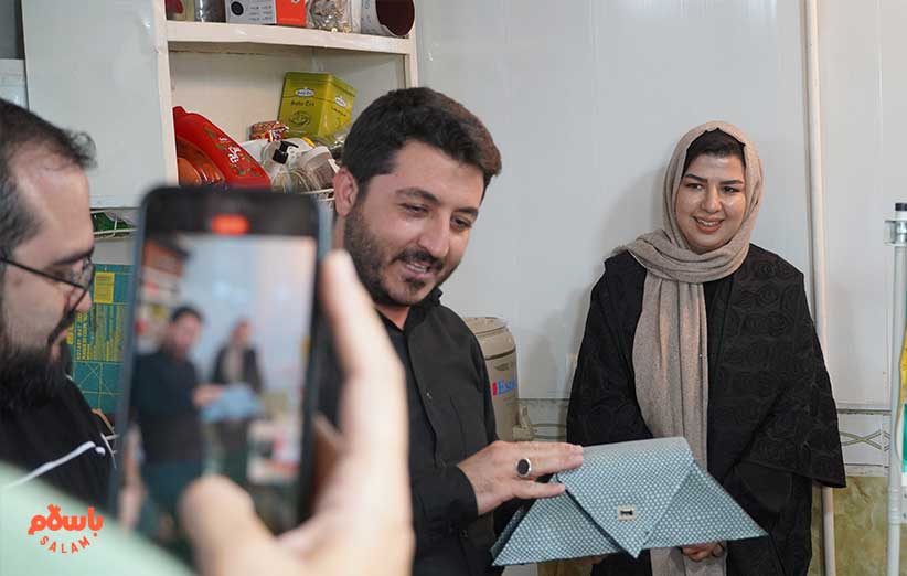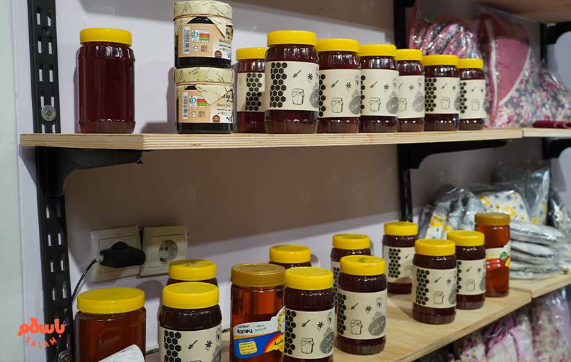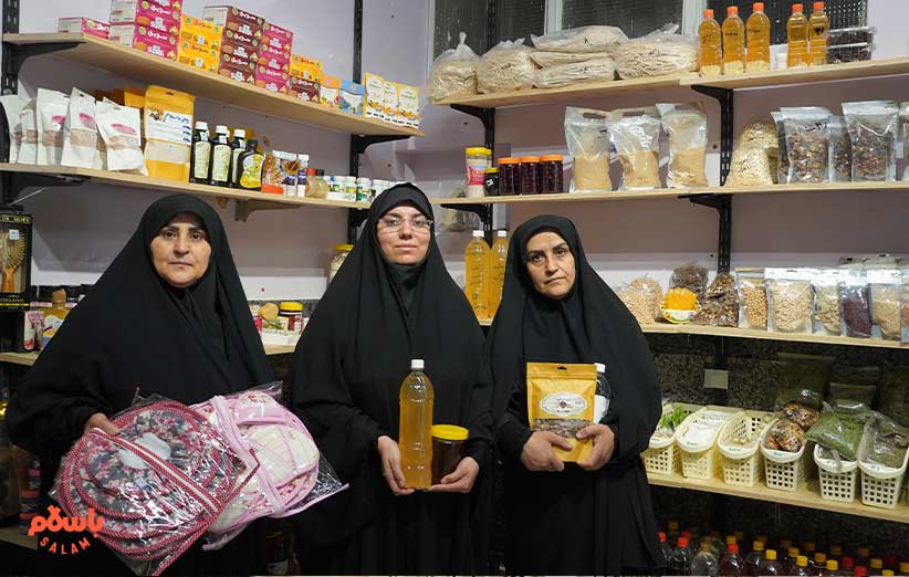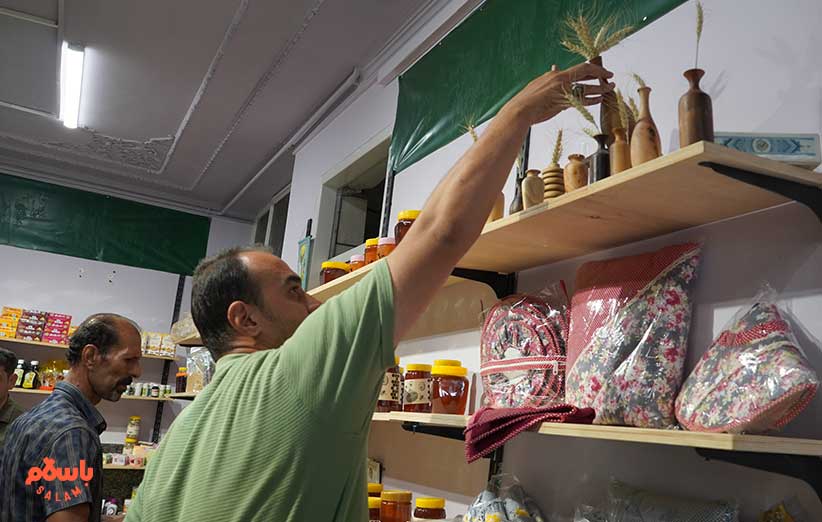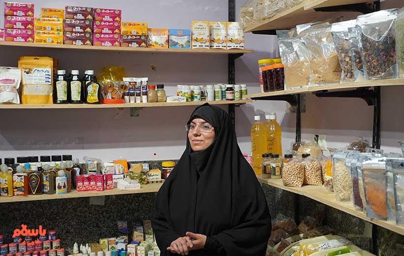 خانم حسنی می‌گوید محصولاتی که این‌جا می‌بینید را 150 خانم سرپرست خانوار تولید می‌کنند. می‌گوید ما مواد اولیه را تهییه می‌کنیم و در اختیار این خانم‌ها می‌گذاریم و آن‌ها محصول نهایی را تولید می‌کنند و برای فروش در باسلام و این مغازه به ما می‌دهند.