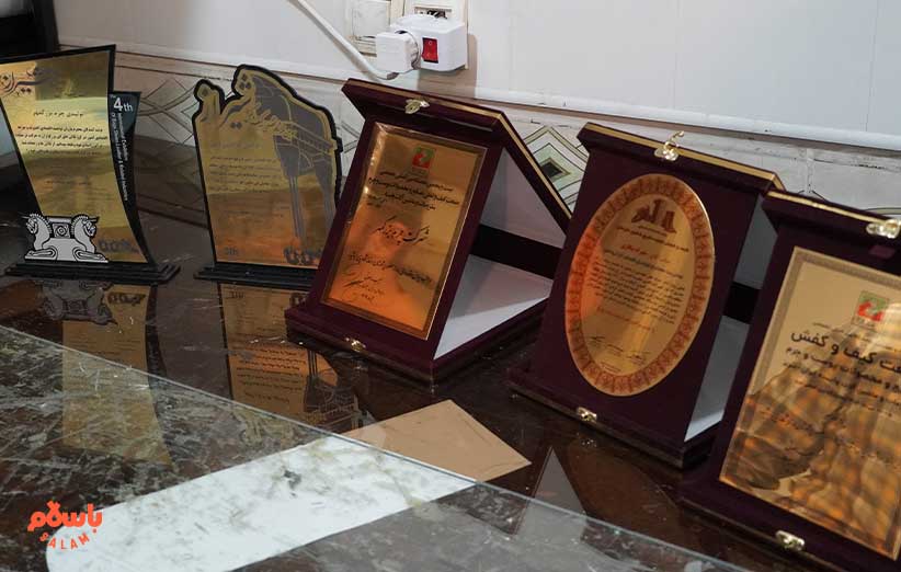 این طرف روی یک میز و در میان چرم‌های رنگارنگ، چند لوح یادبود و تقدیر را کنار هم چیده‌اند. آقای بیگلری به همکارانش اشاره می‌کند و می‌گوید ما مثل یک خانواده‌ایم.