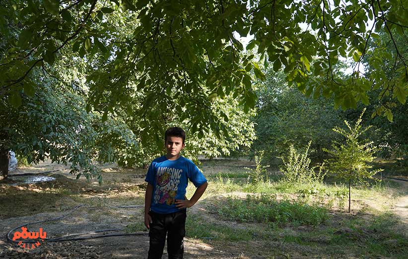 پدربزرگ می‌گوید چندین سال پیش این‌جا باغ سیب بود و به خاطر عدم رسیدگی خشک شد. بعد خودم آمدم و 250 درخت گردو کاشتم و حالا علی دارد توی باسلام گردوهایش را می‌فروشد.