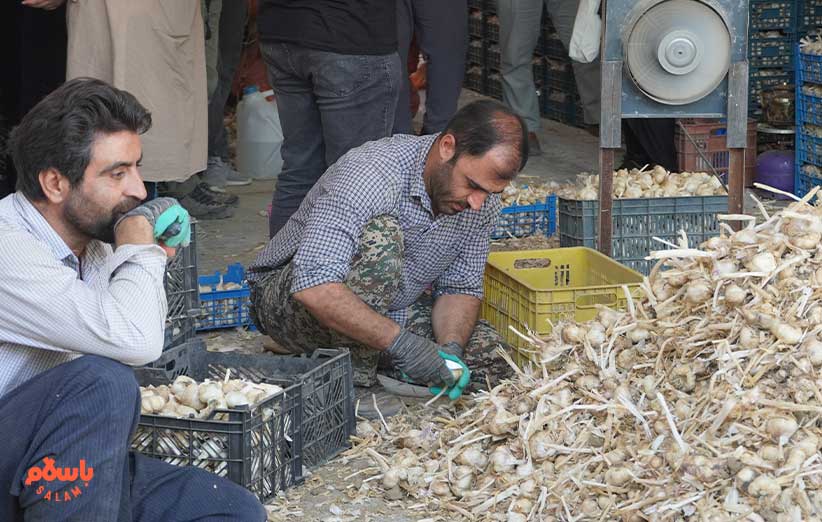 جلوی یکی از همین انبارهای بزرگ، خانم محمدی و همسرشان آقای الوندی، در میان سیرها به استقبالمان می‌آیند. جعبه‌ها بر اساس درجه‌بندی چیده شده‌اند. سیرهای صادراتی، سیرهای حبه شده، سیرهای ریز و درشت و… .خانم محمدی می‌گوید چهار سال است که این کار را می‌کند. به کشورهای هند و افغانستان و پاکستان و… هم صادرات دارند.
