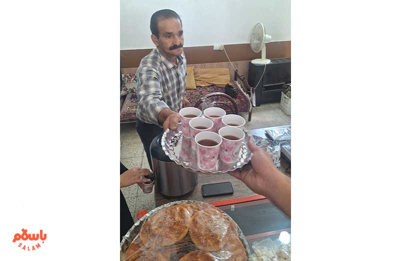 باباحاجی از کلمن پر از یخ، شربت شیره برایمان می‌ریزد و خانم فتاحی یک سینی کلوچه محلی می‌آورد و می‌گوید با مامانم فکر کردیم چطوری از شما پذیرایی کنیم تا این‌که شب نشستیم با مادرم کلوچه محلی درست کردیم.