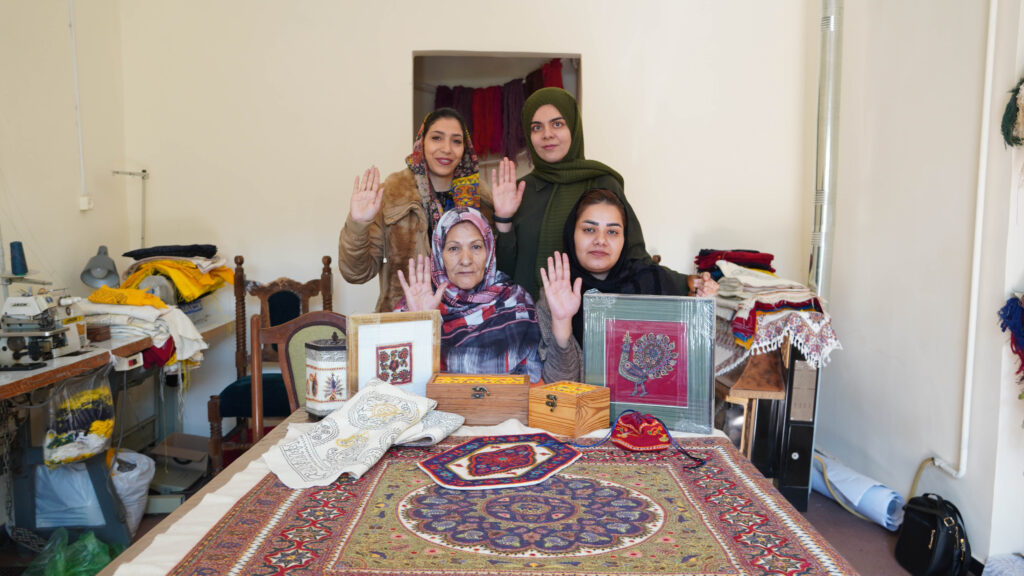 میگوید اینجا به دیگران آموزش هم میدهند و از سال نود و هشت مشغول اینکار هستند و حالا چهل و پنج بانو مشغول کار برای این کارگاه هستند و سالی یکبار هم دور هم جمع میشوند و جشن میگیرند.