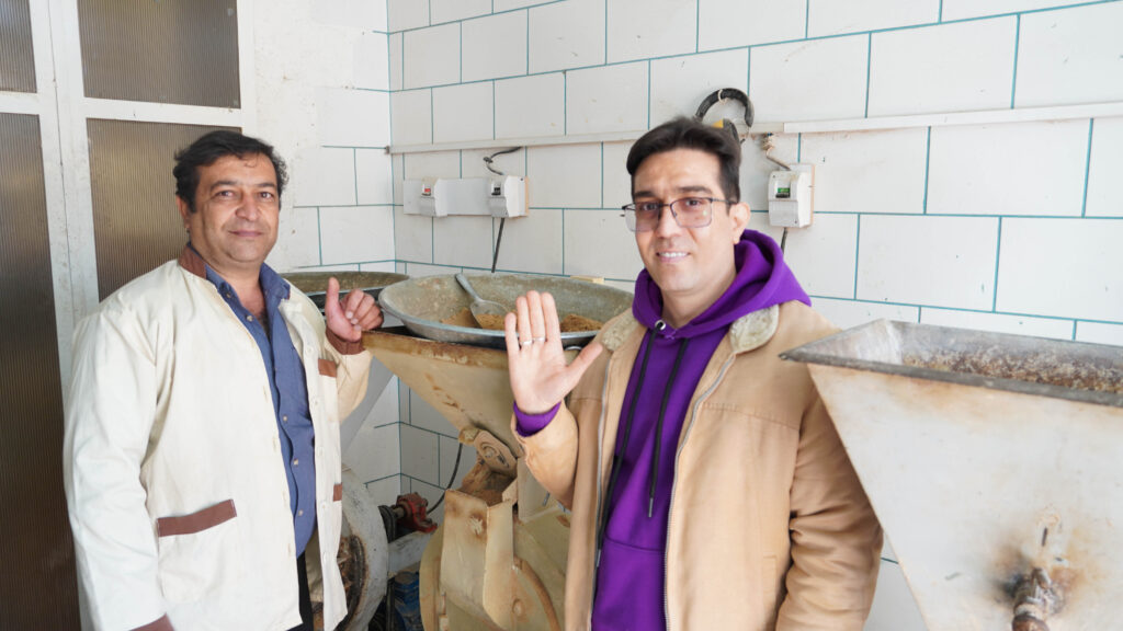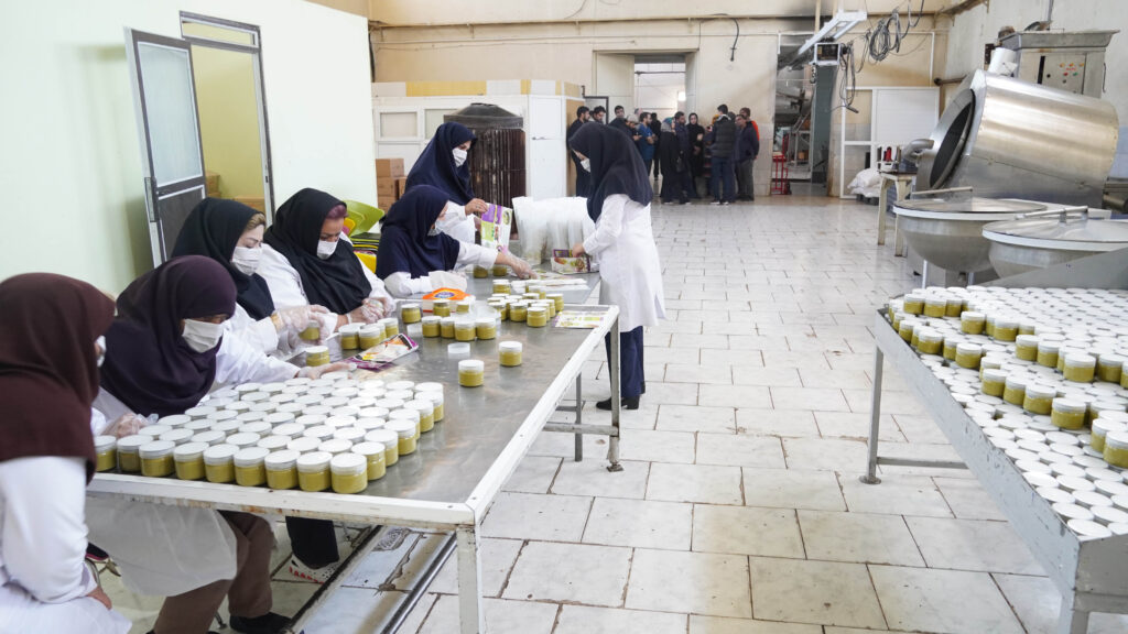 از طرفیت تولیدشان میگوید. از اینکه دهها نیروی مستقیم در این کارخانه کار میکنند. که خیلی از قنادهای تهران مشتری کره پسته و کرم پسته و کره بادامزمینیشان هستند. وقتی وارد سالن اصلی شدیم، دستگاههای عظیم و خاصی را دیدیم که کارکرد هرکدامشان را بهمان توضیح دادند. در سالن کناری هم تعدادی از کارگرهایشان مشغول بستهبندی بودند.
