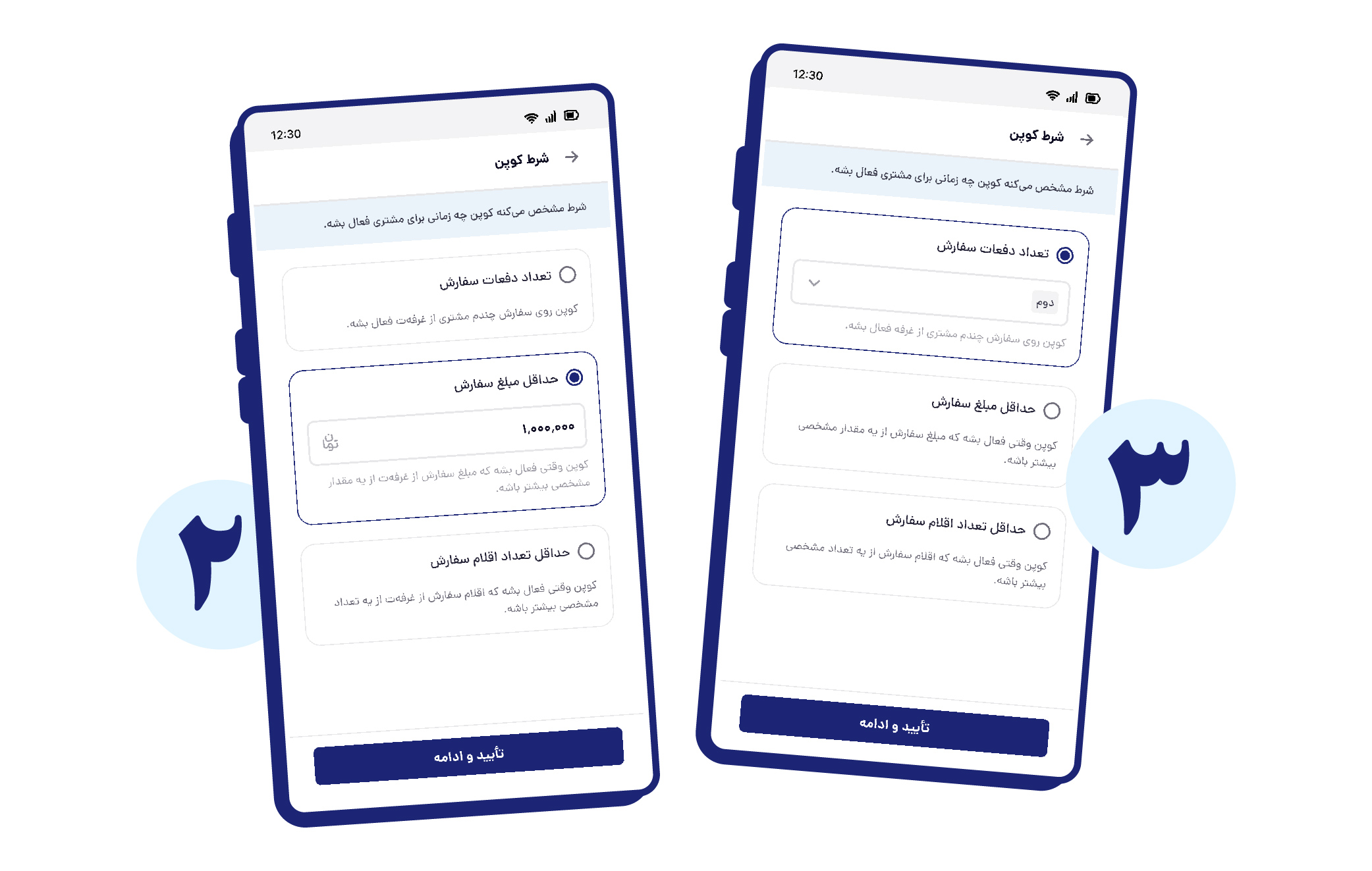 - دو: بر اساس تعداد خرید (برای وفادارسازی مشتری)