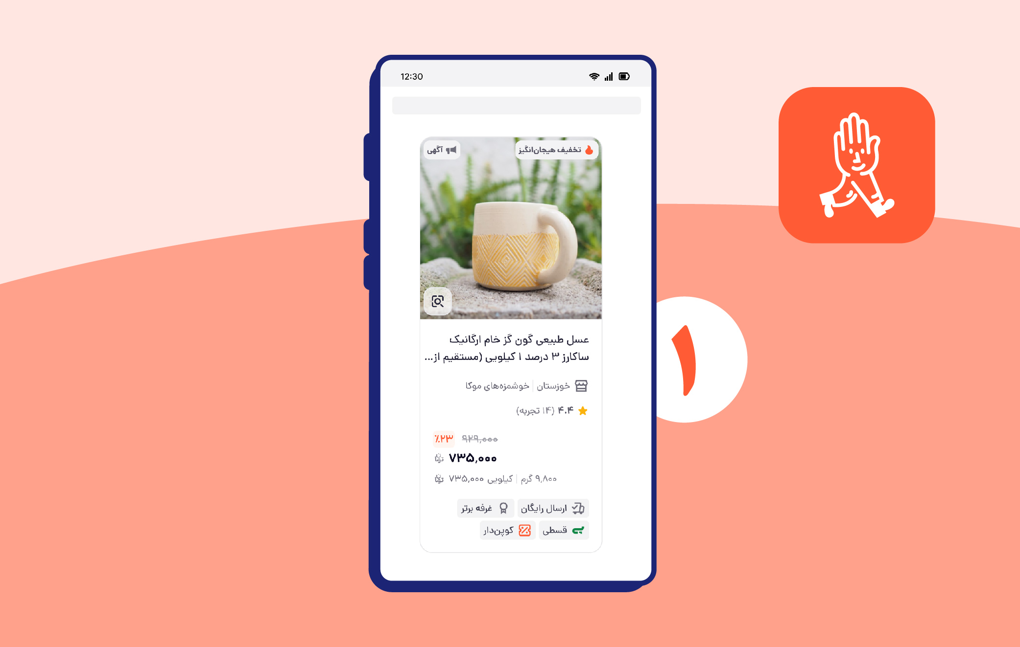 - محصولات دارای کوپن در نتایج جستجو با برچسب مشخص دیده میشوند.