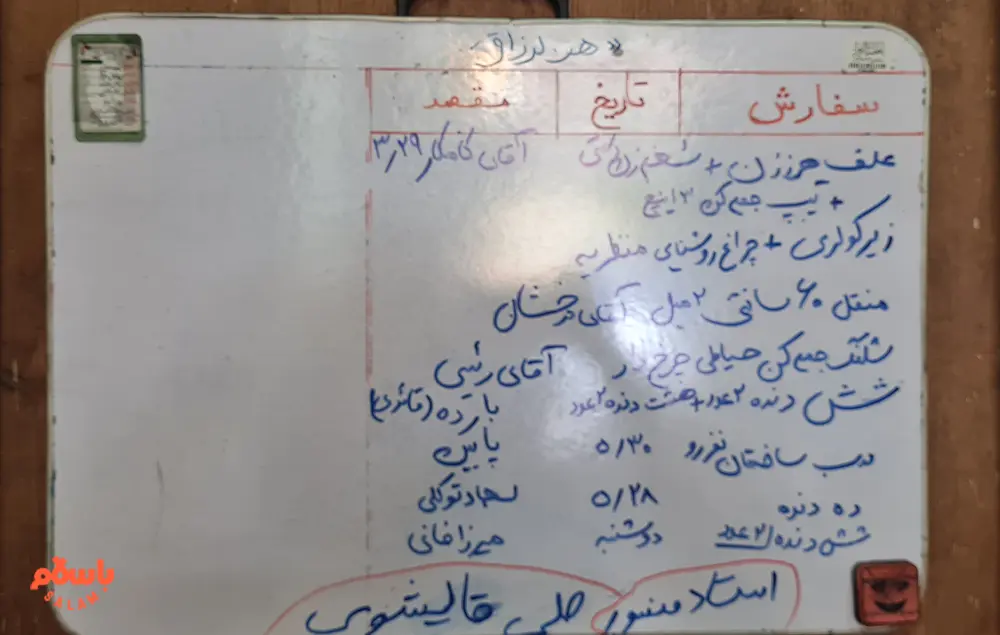 حضور آقای خلجی در باسلام هم مسئلهی جذابیست. او روی تابلوی واتبردی در مغازه سفارشها و روزهایی که باید محصول پست کند را نوشته است و میگوید: «من توی تولید محتوا و گرفتن عکس یکم ضعیفم. اما همش سعی کردم یه جوری محصول بفروشم که مشتری راضی باشه از انتخابش. مثلا یه شلنگ جمع کن فروختم و مشتری خیلی تجربه خوبی برام ثبت کرد و این خیلی برام اتفاق شیرینی بود. از طرفی خیلی برام مهمه غرفهی برتر بشم. چندین دوره هم برتر شدم.»
