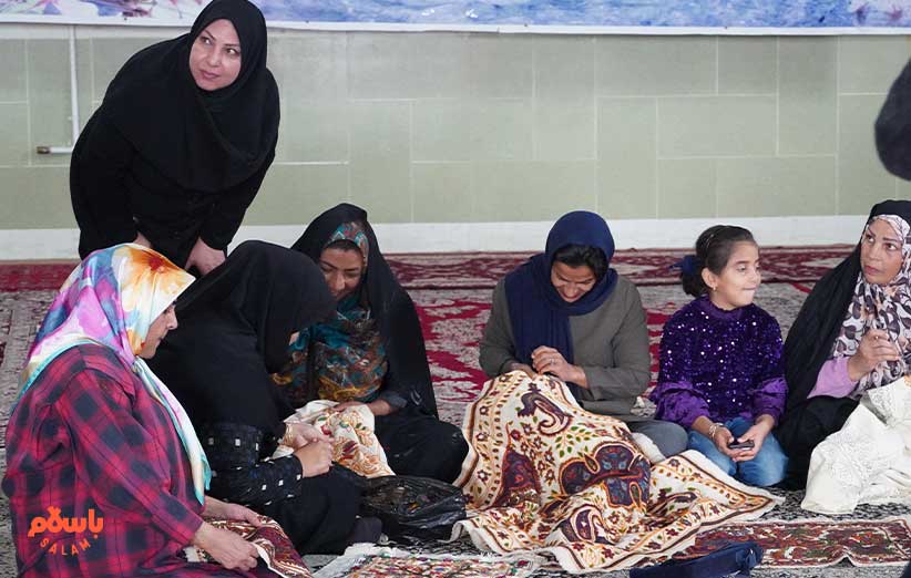 وارد حسینیه شدیم. بوی عدسی مشامم را پر کرد. گروهی از زن‌ها در انتهای سالن گرد هم نشسته بودند و مشغول دوختن پته بودند. یکی دو دختر بچه میان دست و پا وول می‌خوردند. آقایی مشغول فیلم‌برداری بود و یک خانم هم میکروفون بلندی را بالای سر خانم‌های دیگر گرفته بود. خانم میان‌سالی که بعدتر فهمیدیم نام خانوادگی‌اش تاران است، دور و بر خانم‌ها می‌چرخید و هر چه آن‌ها نیاز داشتند را برای‌شان فراهم می‌کرد: «سوزن‌تون کو بچه‌ها؟ خانم عباسی الان نخ همه چی داری خواهر؟ چی کم داری نخ؟ خانم فضل‌آبادی چه رنگ‌هایی کم داری شما؟»