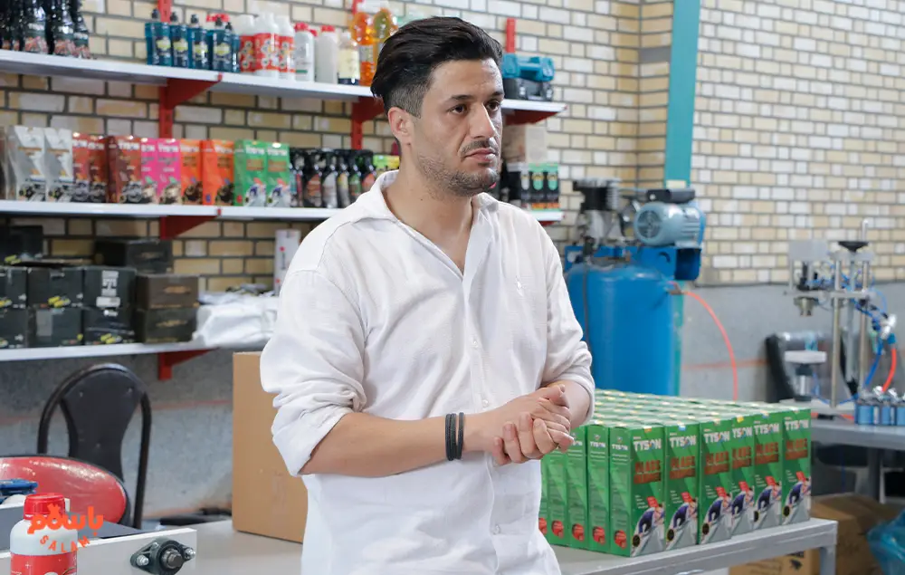این شد که ما نزدیک دو ماه توی کارگاه جدیدی که دوستم دوباره اجاره کرد و با قرض و قوله راهش انداخت، مستقر شدیم و اونجا آزمایشاتمون رو انجام دادیم تا ببینیم چی جواب میده و نتیجهش شد این… محلولهای صنعتی ما، نه اشتعالزاست، نه تبخیر میشه، قیمت مناسبتری هم داره و…»