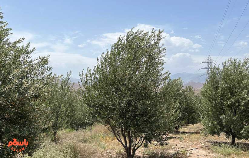 با زویا و رویا و مادر، راهی باغ می‌شویم. باغ خیلی از خانه دور نیست. آفتاب آتش می‌بارد بر سرمان و دماسنج ماشین 43 درجه را نشان می‌دهد. ماشین را پارک می‌کنیم و می‌رویم بالا، حالا میانِ درختان سن و سال دار زیتونیم، زیتون‌های گلدار. مادر می‌گوید:«بریم سمت استخر» و رویا توضح می‌دهد:«اینا زیتون زردن. بیش از چهل سال عمر دارن.» و بعد:«اون درخت‌های اونور رو بابا سال 80 کاشته.» درخت‌ها کوتاه‌ترن و باریک‌تر. لا به لای درخت‌های زیتون، انارهای پر از گل‌های نارنجی به چشم می‌خورد! مادر رب انار هم می‌پزد، مربا هم و انتظار دارد زویا تمام محصولاتش را در باسلام برایش بفروشد.