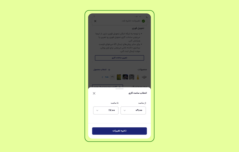 مثلا اگر شما ساعت کاری را 9 صبح تا 5 بعد از ظهر تعیین کردهاید، سفارشی که با ارسال فوری، ساعت 4 بعد از ظهر ثبت میشود باید 3 ساعته به دست مشتری برسد. (این ساعت کاری فقط برای قابلیت ارسال فوری است و ارتباطی با ساعت کاری غرفه ندارد. در باسلام غرفه شما 24 ساعته باز است)