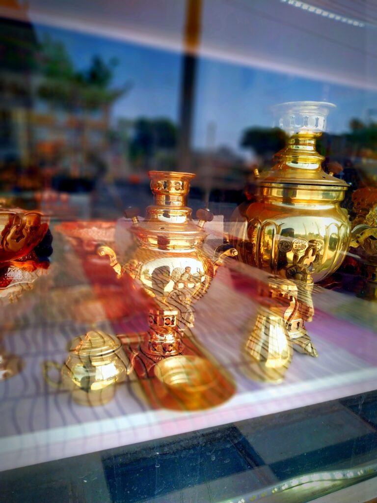هوای داخل شهر زنجان با تابش مستقیم آفتاب در حد طاقتفرسایی گرم بود. ساعت 4 بعدازظهر فروشگاه برای جلسه باسلامی آب و جارو شده بود، مسها برق میزدن و با تنوع بالا در قفسهها چیده شده بودند. رابطه پدر و پسری جالبی داشتند، کاملا کارشون بهم مرتبط بود. آقای محمدی توی هرجمله از سرشلوغی و مهارتهای پسرش امیرحسین میگفت. این خانواده 3 غرفه در باسلام داشتند و با هم اداره میکردند.