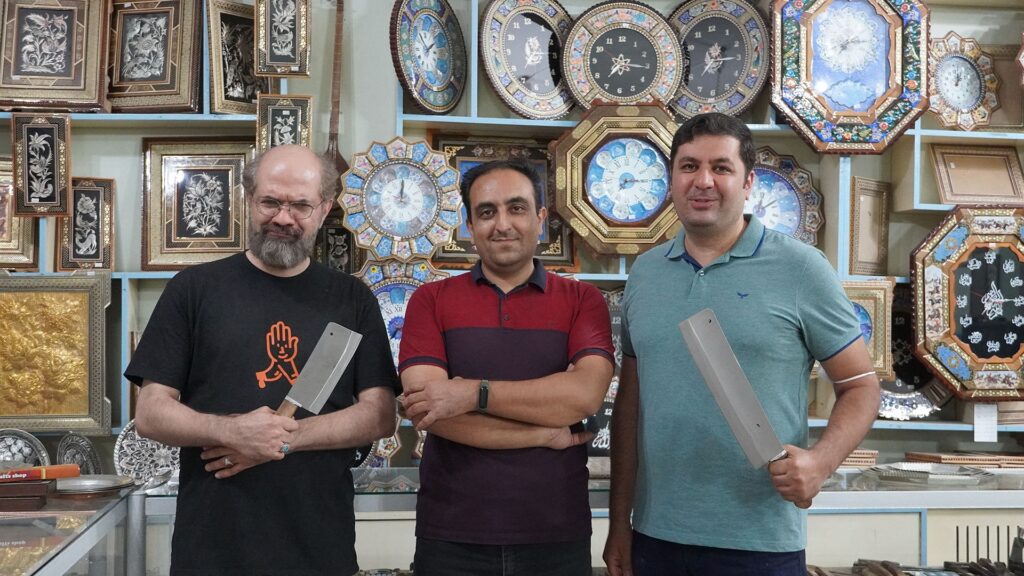 مراحل شناخت چاقو و کیفیتسنجیاش رو هم برامون مفصل توضیح دادند. بعد از ساعات گرم بعدازظهر شهر زنجان، غرفه آقای نجفی که مجهز به کولر بود واقعا بهمون چسبید.