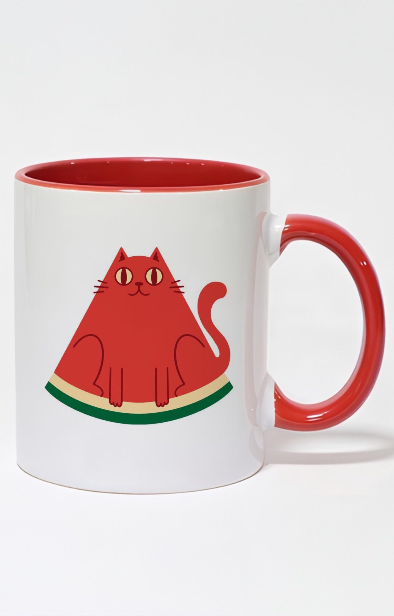 ماگ دسته و داخل رنگی طرح گربه هندونه ای شب یلدا کد 10392