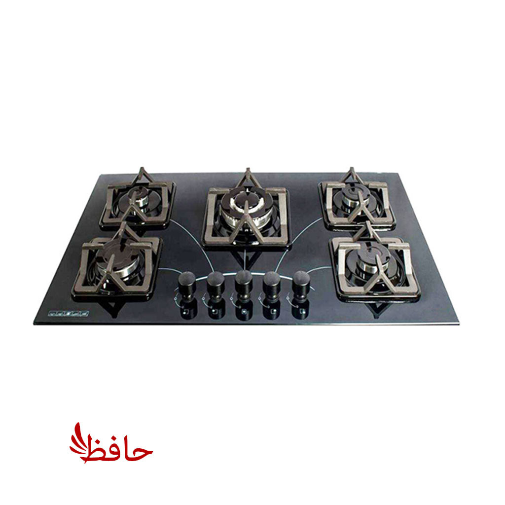 اجاق گاز صفحه ای شیشه ای پنج شعله مدل خورشیدی (پسکرایه)