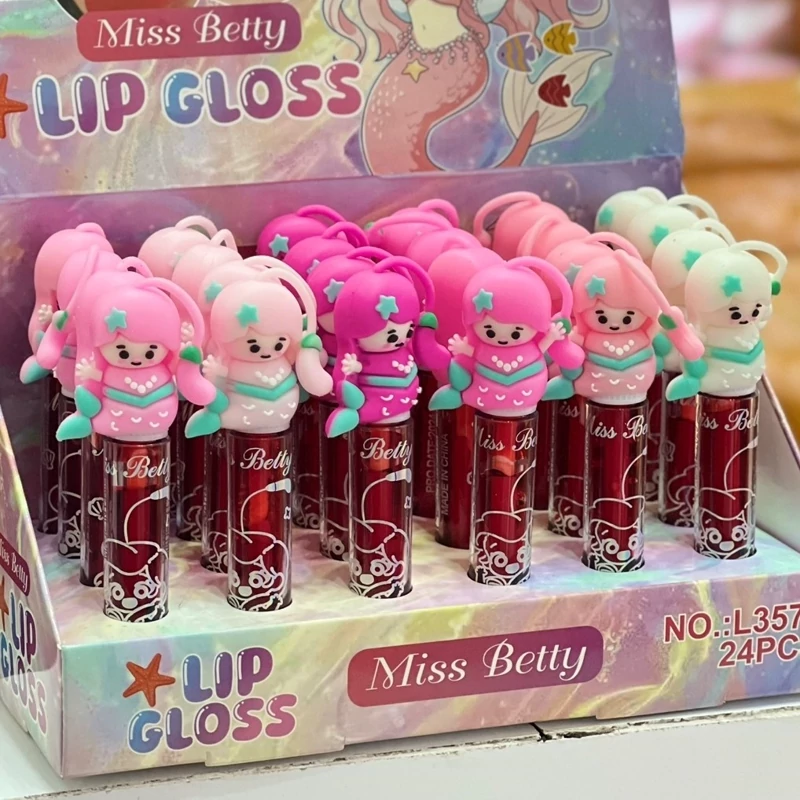 لیپ گلاس شاین میس بتی رنگ آبی miss betty فیکساتور رژ نرم کننده لب و آبرسان ماندگاری بالا تاریخ مصرف 2029