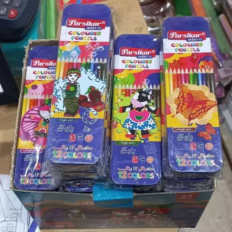 مدادرنگی 12 رنگ پارسیکار مدل JM885-12 جعبه فلزی کشویی