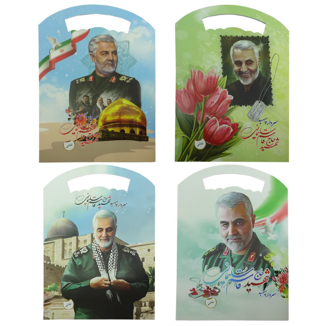 1014001-دفتر نقاشی رحلی دسته دار طرح حاج قاسم بسته 4عددی