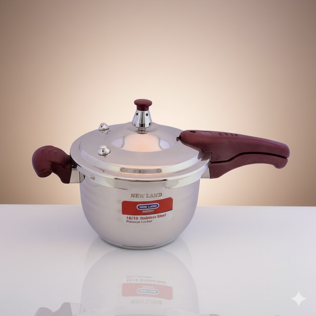زودپز سه لیتری از برند نیولند به همراه درب قابلمه و یک واشر یدک