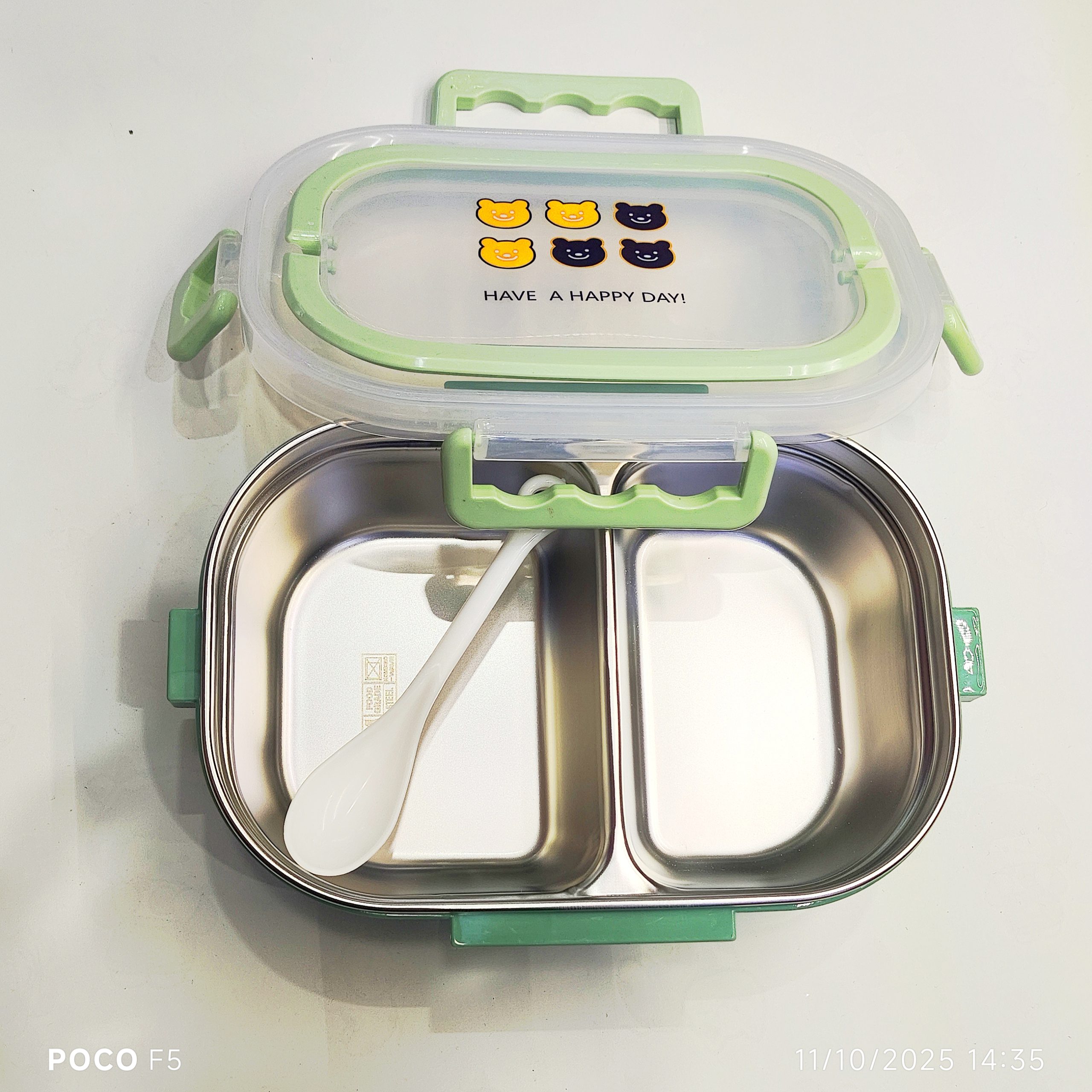 لانچ باکس (ظرف غذا) کودک داخل استیل طرح خرس با قاشق