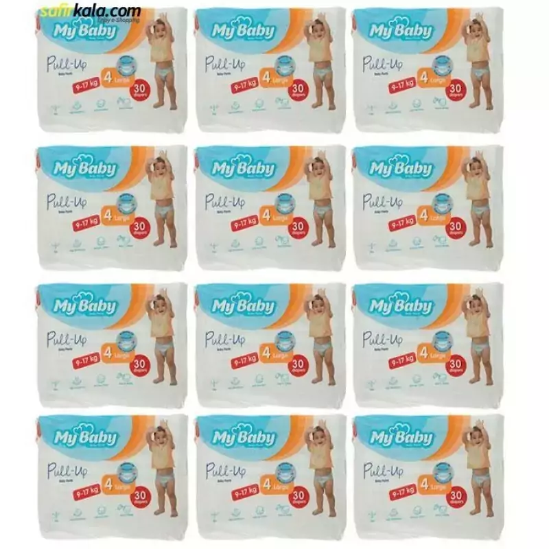 پوشک مای بیبی مدل پول آپ سایز 4 بسته 30 عددی مجموعه 12 عددی