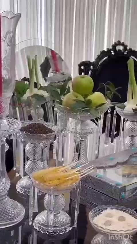 به نام خدا ست 9 تیکه باوارات هفت سین به همراه یک جفت شمعدان دارای آویز کریستالی وارداتی درجه یک