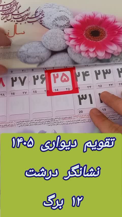 تقویم دیواری1405 دارای 12 برگ و نشانگر است 👈 پرفروشترین🏆 و محبوب ترین♥️ و بهترین🎁 تقویم دیواری باسلام👌 با تقویم دیواری زمان زیر انگشت شماست فلسفه تقویم دیواری علاوه بر زیبایی ✅️**بزرگ بودن اعداد است ✅️بطوریکه از فاصله دورتر هم قابل رویت باشد ✅️(این تقویم دارای این خصوصیات است)✅️ *تقویم دیواری دارای نشانگر روزشمار می باشد *تقویم دیواری12 برگ داره یعنی هر ماه یک برگ است *تقویم نشانگر محل نصب به دیوار دارد *تقویم دیواری مطابق با تصویر ارسال می شود *13 بدر امسال چه روزیه؟ *شبهای قدر امسال چند شنبه اس؟ *نیمه شعبان سال 1405 چه روزیه؟(از الان منتظر جشن عروسی تو نیمه شعبونی...) *22بهمن چه روزیه؟ تعطیله؟ *شب ترویج فرهنگ میهمانی و پیوند با خویشاوندان دور و نزدیک و ...(اگه گفتین چه شبیه؟) *روز تکریم همسایگان و بازماندگان و دربهدران( راهنمایی کنم آخرین ..... ...