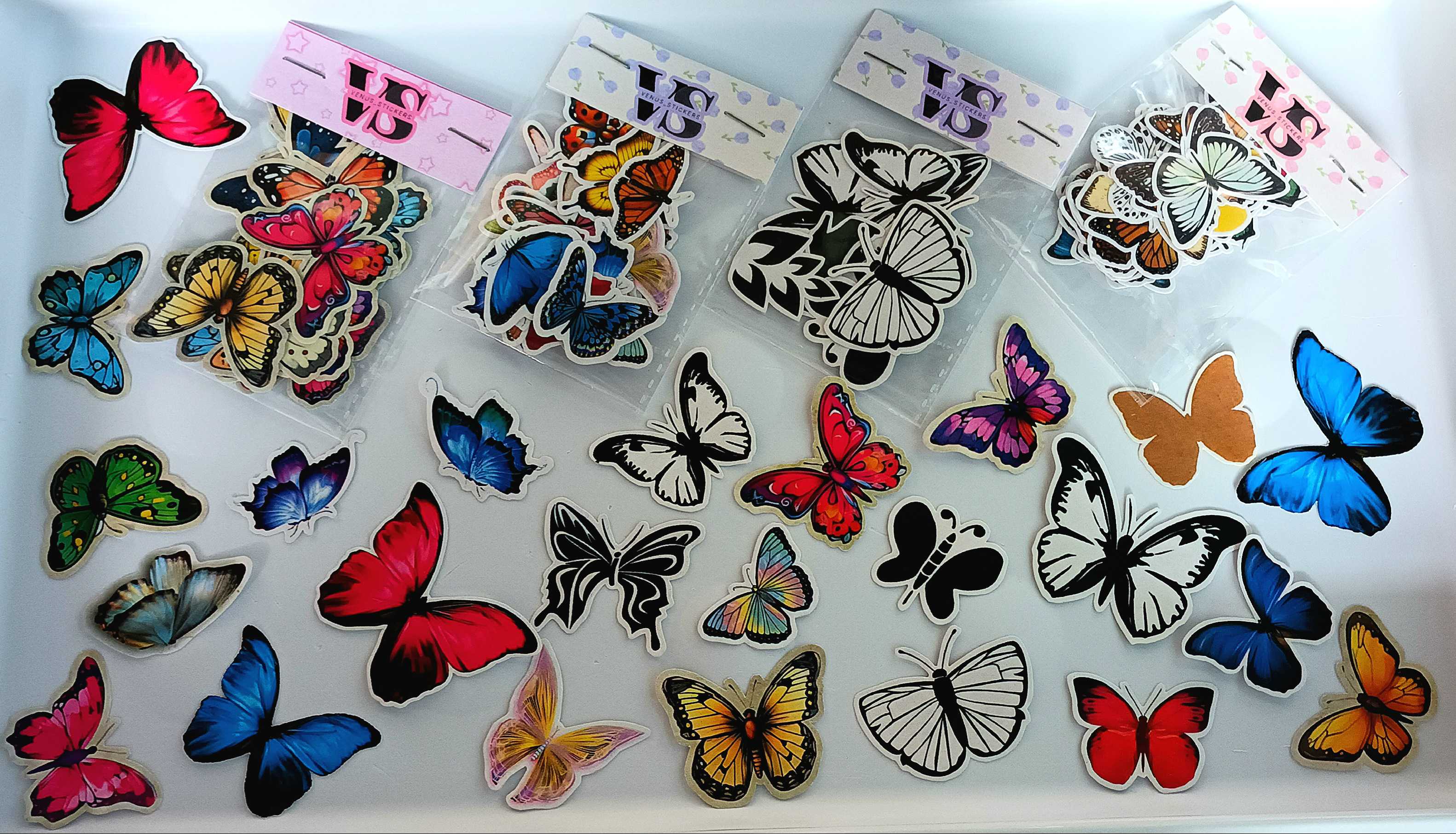 واااااایی من عــــــــــــاشق پروانهام 💜🦋 هرجا میبینم استیکراشو میخرم😂🥰 و این غرفه چندتا پک مختلف استیکر پروانه داشت که همشونو خریدم😍😎 یکی از یکی خوشگلتر و خوشرنگترن 🥰 یعنی کل خونمو با پروانه کردم یکی 😂😎 خلاصه که ...