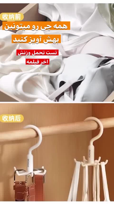 ✔️کیفیت عالی ✔️چرخش روان ۳۶۰ درجه ✔️صرفه جویی در فضا ✔️تحمل وزن بالا ✔️مناسب برای لباس، کیف، کمربند، شال و … ✔️دارای ۶ قلاب