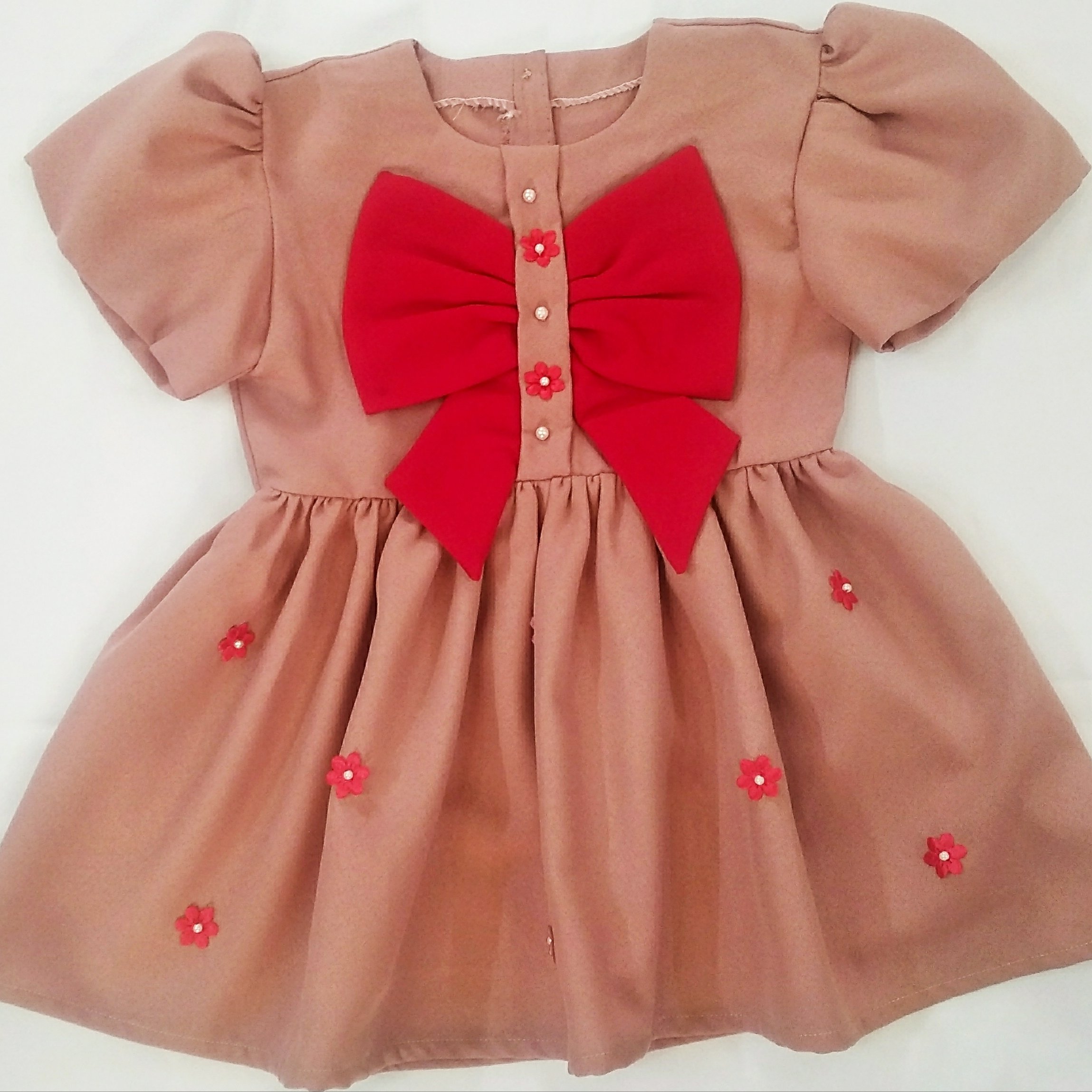 لباس دخترانه بچه گانه پاپیونی آستین کوتاه تابستونی پشت دکمه دار شکوفه دار