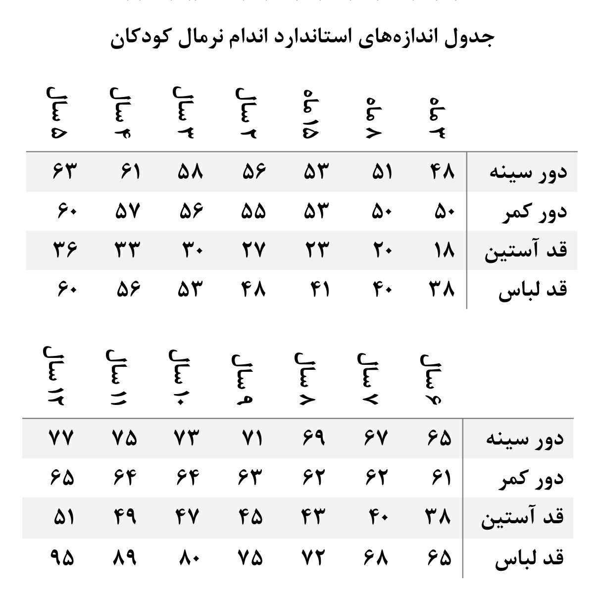 بر اساس جدول سایزبندی
